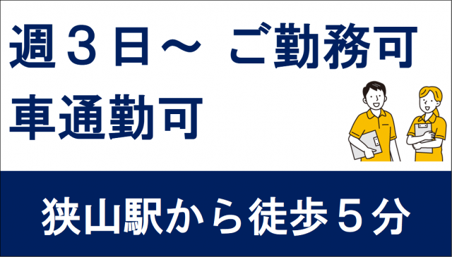 | 応募条件 | 介護職員初任者研修,介護福祉士実務者研修,ホームヘルパー 1級,ホームヘルパー 2級,普通自動車免許 |