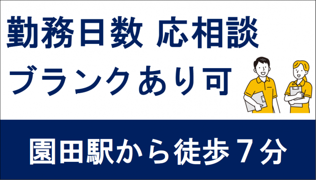 | 勤務地 | 兵庫県尼崎市東園田町2-48-7 阪急神戸線園田駅下車 1F北出口より徒歩約7分 |
