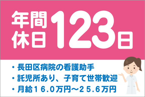 看護助手 病院/夜勤あり/年休日123日